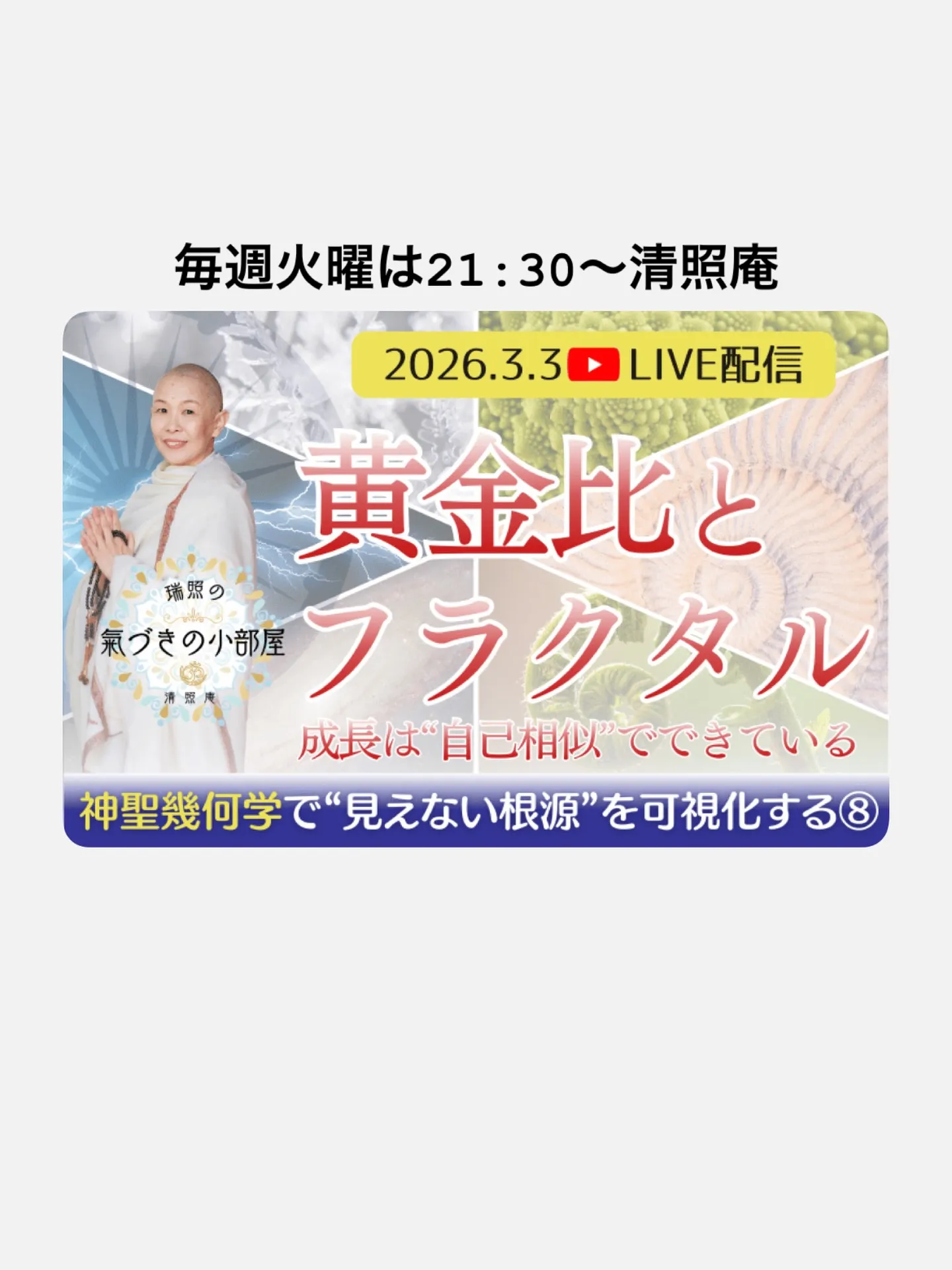 第8回の今夜は「黄金比とフラクタル:成長は“自己相似”でできている」です。